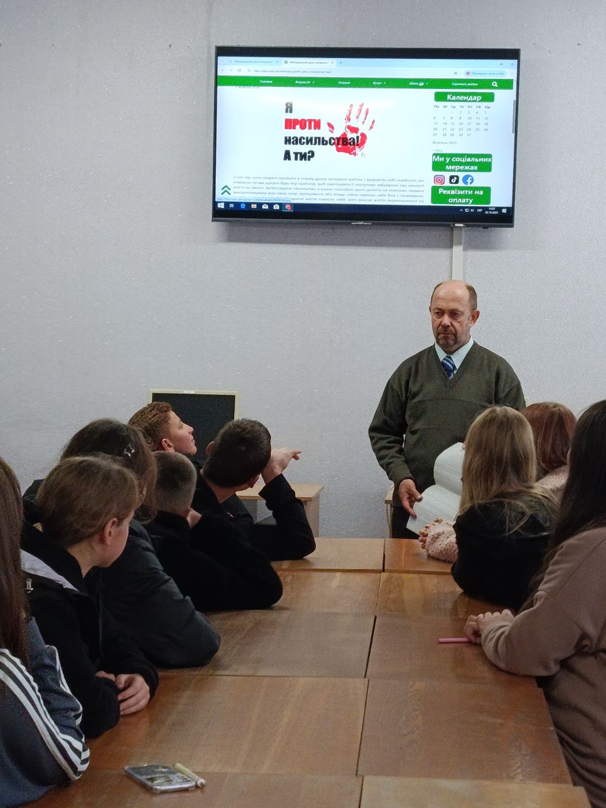 Про головну ідеєю цієї дати говорили старшокласники з шкільним психологом на занятті «Попередження насильства»